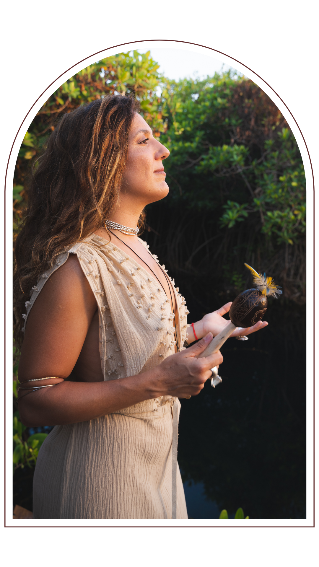 In ceremonial space, Beatriz enters a deep state of meditation and flow, accessing transcendental language, awakening dormant emotions and weaving in remembrance of your soul, your truth.